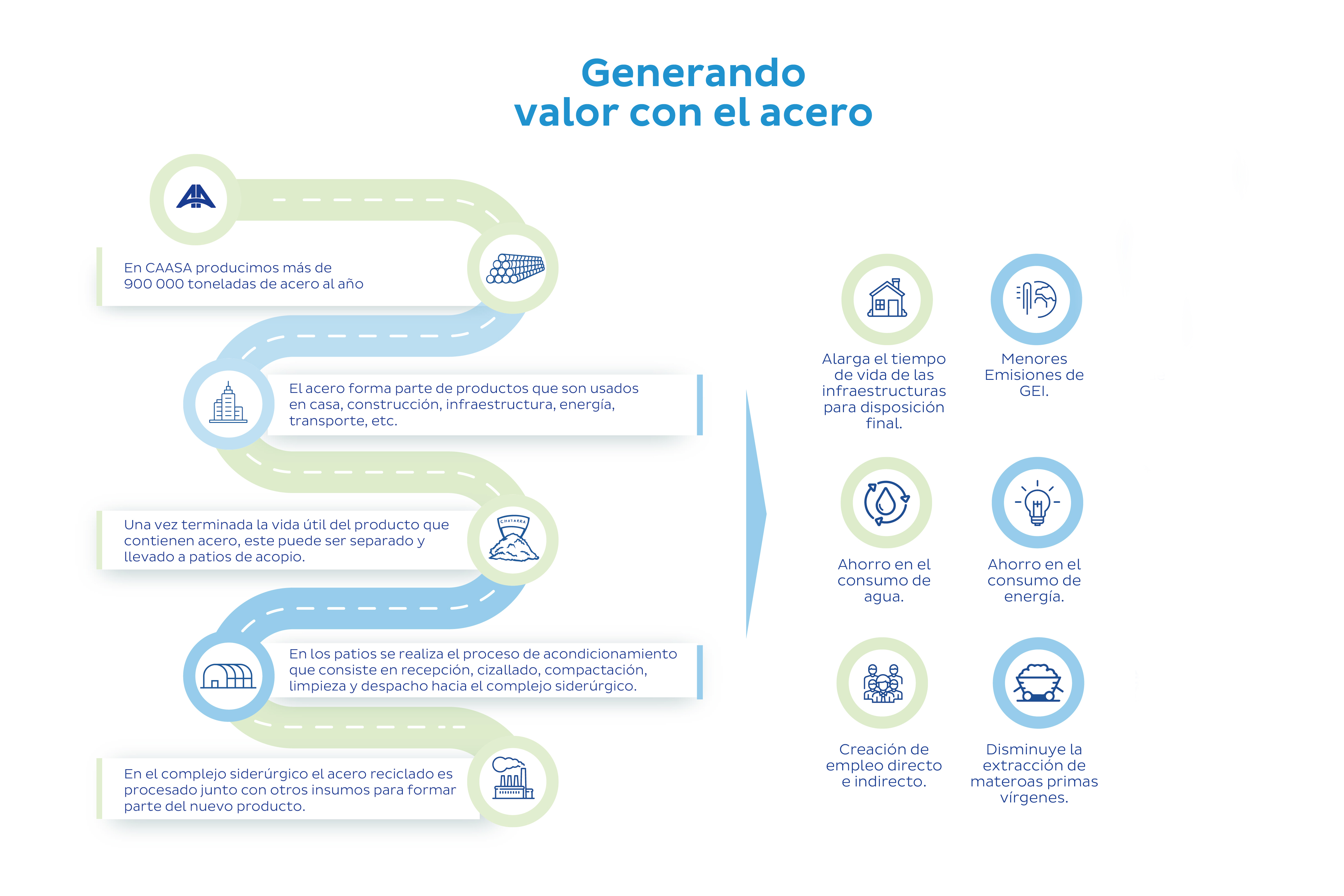 El acero que producimos está diseñado para que sea 100% reciclable, debido a sus propiedades. Incluso, la mayoría del acero que hoy utilizamos se extrajo y fabricó por primera vez hace más de siglo y medio, sin que haya perdido su calidad. El reciclaje del acero supone un ahorro de materias primas y de recursos en su fabricación.