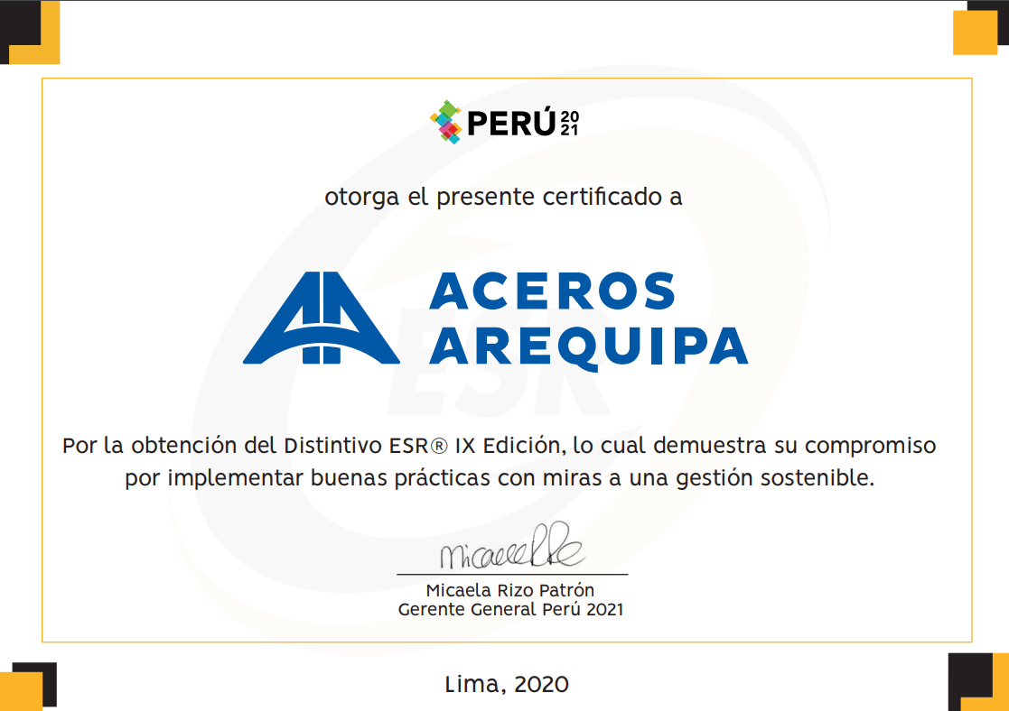 Recibir estos reconocimientos en Corporación Aceros Arequipa nos impulsa a mejorar año a año en virtud de la mejora continua de nuestras acciones en materia de gestión de social, ambiental y económica.